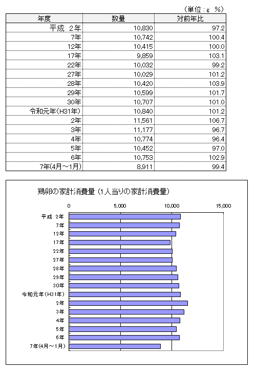 注1:鶏卵流通統計調査は平成22年から年1回の更新につき、令和7年1月以降の生産量は未公表