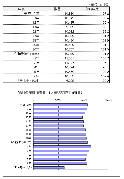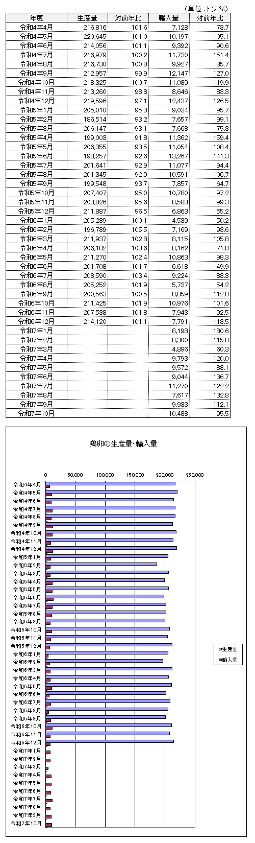 注1:鶏卵流通統計調査は平成22年から年1回の更新につき、令和7年1月以降の生産量は未公表