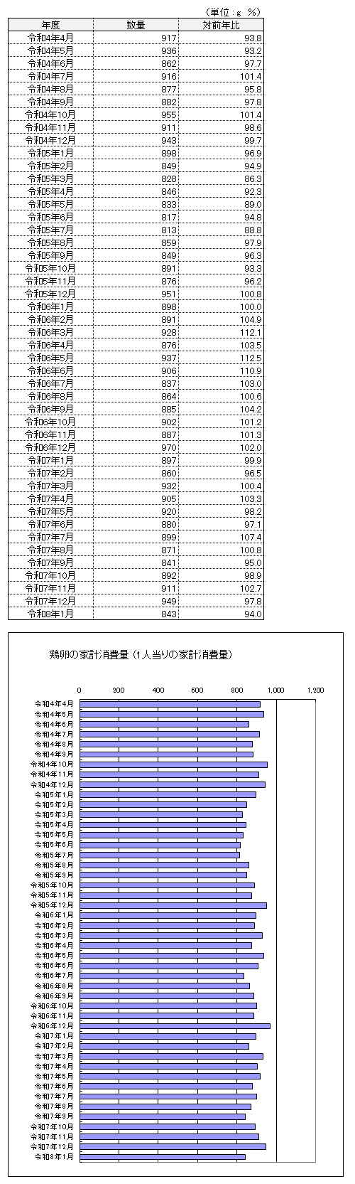 注1:鶏卵流通統計調査は平成22年から年1回の更新につき、令和7年1月以降の生産量は未公表